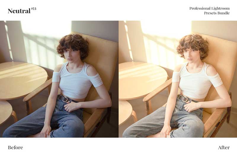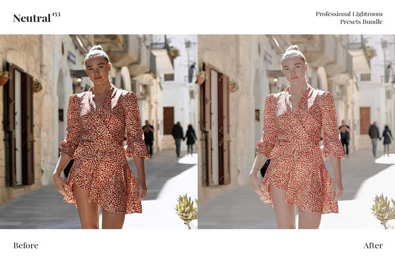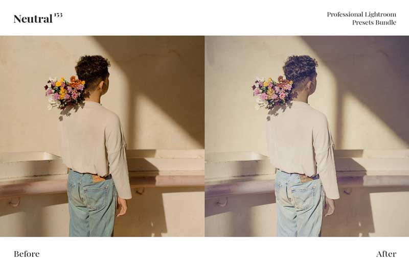 153 Neutral Presets Bundle are the most trendy and various Instagram and Professional preset collection. In this pack included: neutral, natural, low contrast, faded, pastel and many other presets.