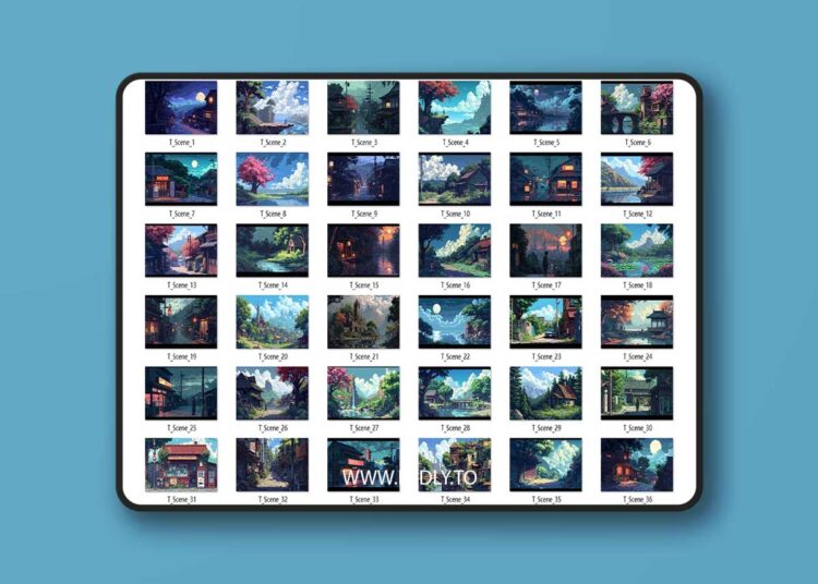 This asset has 70 different pixel scene images, all measuring 1456×816. Suitable for the background of graphic games and can also be used as UI decoration.