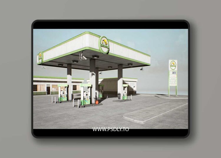 A modern Gas Station set in an abandoned state, includes a convenience store with interiors and lots of props and an external Self Service Carwash Building. Everything is crafted to work with Lumen’s requirements.