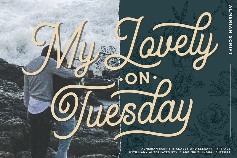 Almerian Script was made with classic taste, handmade-touch, and combine with moderns script, the combination of those styles delivered us to the beauty and stylish of a typeface. With ‘OpenType feature’ this font gives you so many options to create something unique. mix and match.Almerian Script with a bunch of alternative characters to fit your project. with the result that, The Hometown Typeface is a great choice for your logo design, clothing, Posters, Vintage, Catalogue, Logotype, Hand-Lettering or Retro Design, and many more.