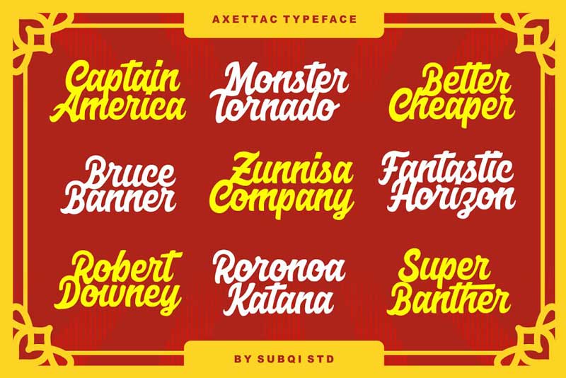Hi Everyone !.. Let us Introduce Axettac Script 1390142. It’s included Script as the main font. This font is a bold script typeface. This font is perfect for logotype, label design. poster, flyer, display, sticker and many more.