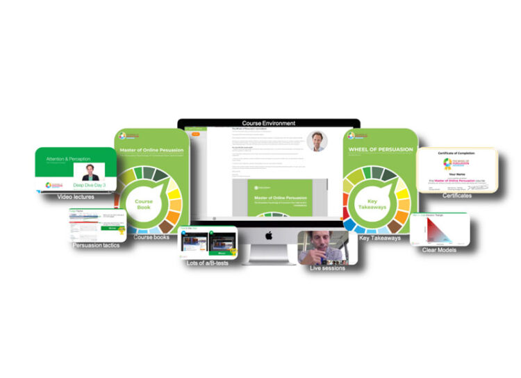 The course combines all courses available by The Wheel of Persuasion (by Bart Schutz). It provides you with all major models & theories from behavioral science and dozens of practical psychological tactics. Moreover, you’ll learn how to apply these insights to boost your digital persuasiveness and your users’ digital experience.