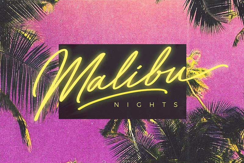 introducing Bayshore + New! Neon Glow Styles. Perm your hair, squeeze into your lycra, and retro-fy your text with Bayshore! A totally tubular mono-line script font straight out of the ’80s.