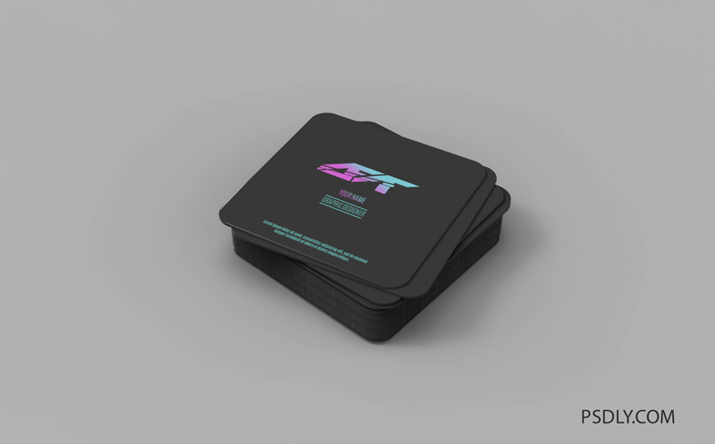 Rounded Square Business Card Pile Mockup