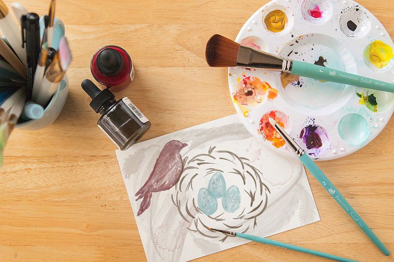 I LOVE to make water-colored projects. But sometimes I just don’t feel like dragging all of my supplies out to make new projects. PLUS when I DO paint something, well, if I am not thrilled with where an object was painted I am just stuck- wasted paper, wasted supplies, wasted time. Growl. SO, I decided it was time to make watercolors with no mess and no commitment!