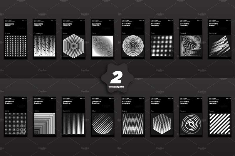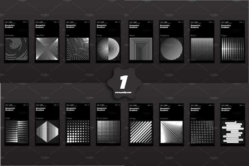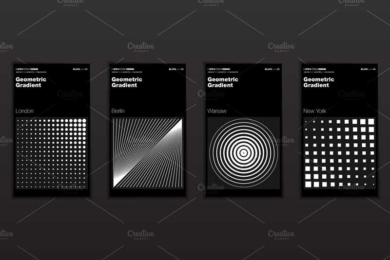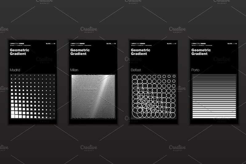 Geometric halftone gradients. Minimal cover design backgrounds. Abstract shapes. Vector illustration. Everything is editable and resizable. Fully layered. Illustrator files (Ai, EPS10) and hi-res JPG. Also, Check out Geometric Gradient Backgrounds.