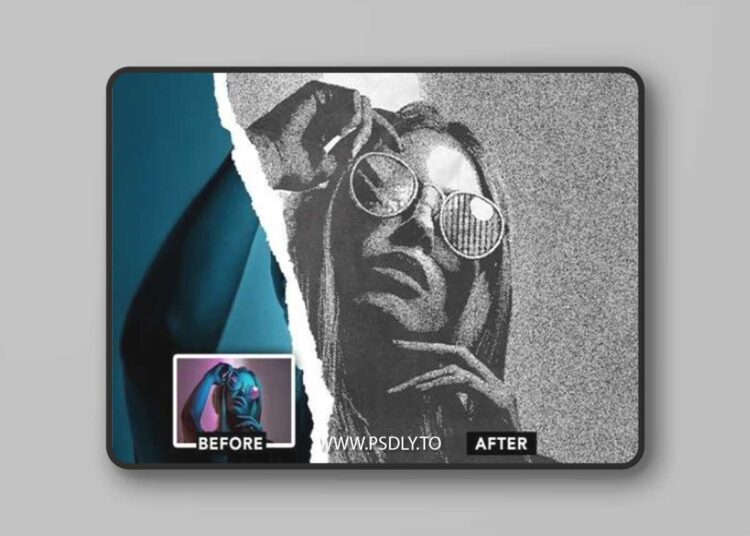 Download Halftone Torned Photo Effect. Are you looking for this valuable stuff to download? If so then you are in the correct place. On our website, we share resources for, Graphics designers, Motion designers, Game developers, cinematographers, Forex Traders, Programmers, Web developers, 3D artists, photographers, Music Producers and etc.
