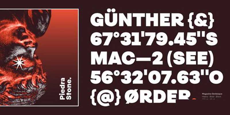 Magazine Grotesque is the perfect choice for logos, titles, headlines and short blocks of text. As you would expect from Latinotype, this face comes with a standard set of 487 characters that support over 200 Latin-based languages.