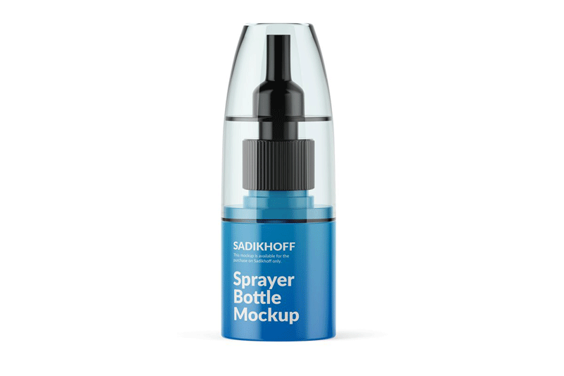 Present your awesome design on this PSD mockup of a matte sprayer bottle. Premium quality. Ready to use. The color of the cap is editable. The cap is removable and transparent what allows you to display it on any background.