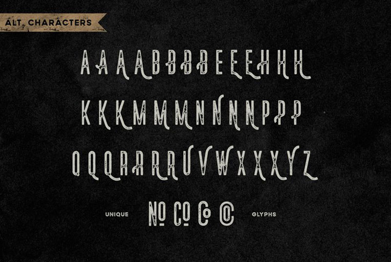 The font is perfect for people looking for vintage aesthetics design with plenty of variations of texture, also it works for modern designs. Suitable for most graphic design such as typography designs, covers, labels, badges,, quotes, apparel designs, logos, posters, and more.