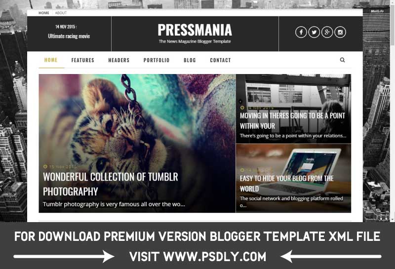 Features And About Of PressMania Blogspot Template