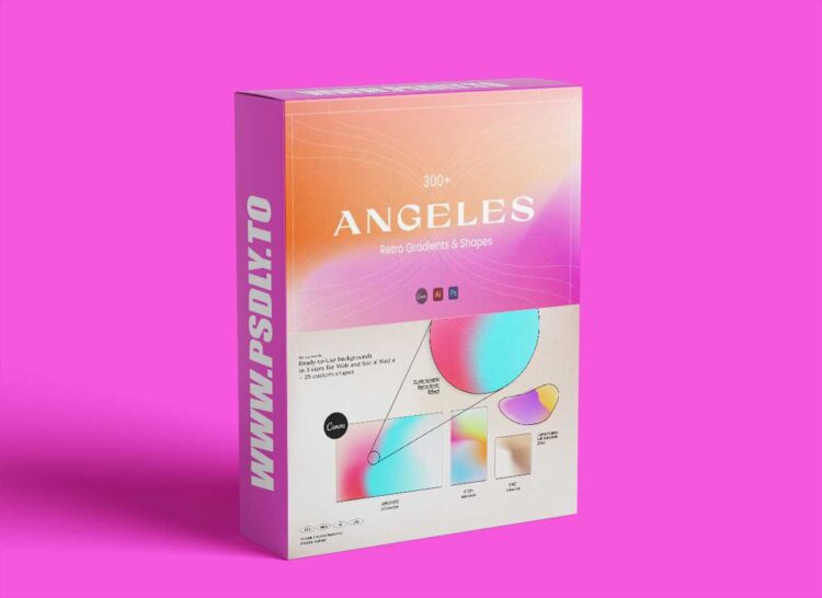 As a great addition to the gradient textures, Angeles includes 25 free-form shapes, editable in Photoshop. Place any of the gradients in the shapes for endless variations.
