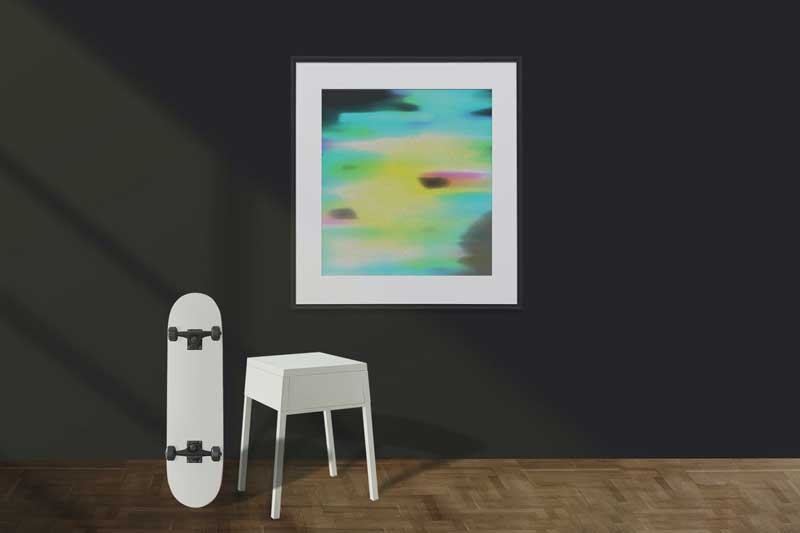 Colorful abstract paint on the wall with skateboar