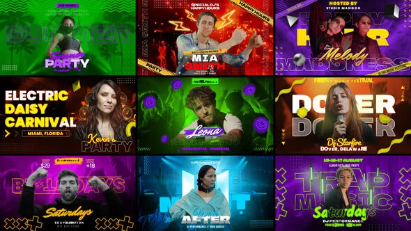 Freeze Frame Music Event Promo for music events, parties, DJ nights, and festivals. Fully customizable with bold typography, glitch transitions, and energetic effects perfect for high-impact social media promos.
