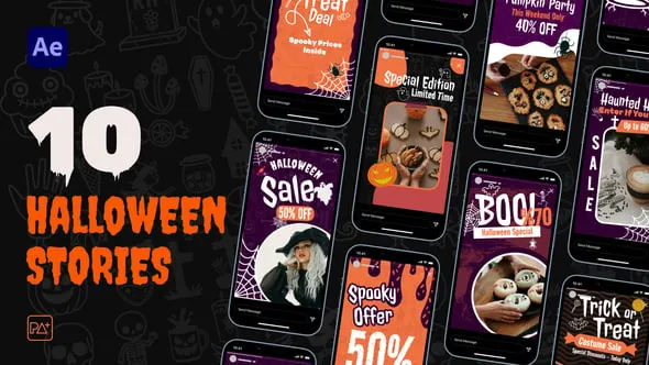 - 10 high-quality animated modern Halloween Stories For After Effects.