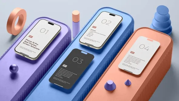 5 lively scenes featuring Phone 16 Pro for showcasing apps and screenshots (up to 17 images); Scene control layers let you tailor each scene to match your screen content, by controlling the color for all scene elements. Control the optional screen shadow. 17 screen place-holders for image or video content. Organized template for easy edits without requiring any plugins! Help file included.